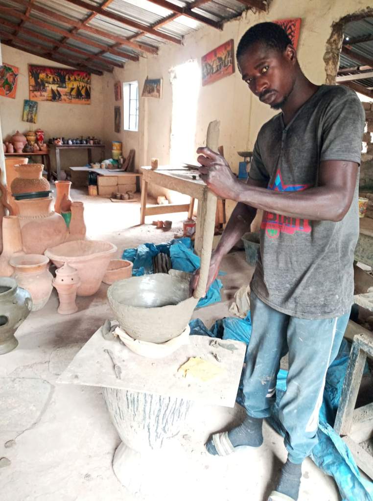 While teaching in Guinea Bassau, he met and married Fatoumatta Mendy and they later returned to The Gambia to run their own studio. Edrissa was the first Gambian potter to bring modern pottery techniques to The Gambia and taught many students the skills that he had learned over in Norway, Indonesia and the U.K. Through his teaching and the sharing of his skills, he founded the modern pottery tradition in The Gambia.
