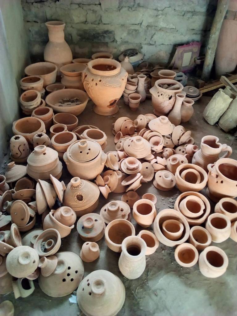 Saine Pottery uses a red Earthenware Clay, that the family dig themselves from a riverbank in The Gambia. It’s a natural clay body, that is harvested by spade and pick-axe, after the grasses and topsoil are removed from the area.